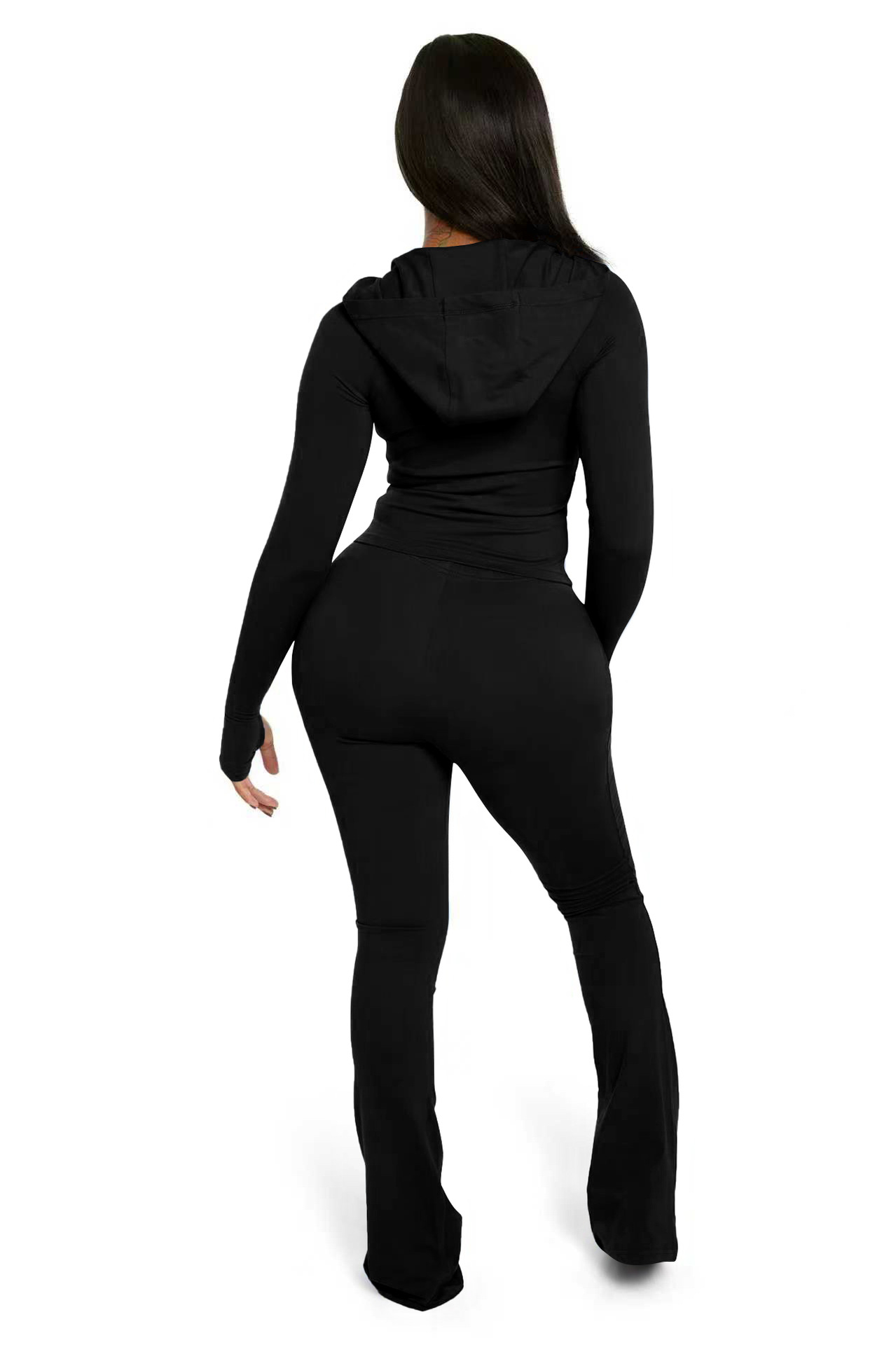 Casual Solid-Color Two-Piece Hooded Cardigan Set - New Era Fashion LLc